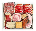 佐賀県唐津市七山で厳選された素材だけを使い、すべて手作業でハム・ソーセージを作る「燻や」から、オーナーの田部さんおすすめの詰合せ。大分のハーブ豚や鹿児島の黒豚をはじめ、九州産の豚肉を使った5品、スモークの風味と舌にとろけるフォアグラとが絶妙に調和した「フォアグラスモーク」、食べやすくスモークした「牛タンスモーク」、ほのかなスモーク香の「鯨のうねスモーク」、ざる豆腐で有名な「川島豆腐」の豆腐をじっくり燻した「豆腐の燻製」入り。