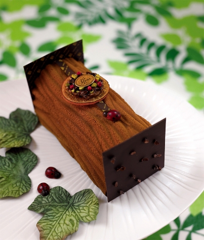 「オレンジとパンデビスは幼少時代に過ごしたクリスマス休暇の思い出の香り」という、キャラメリエ&ショコラティエのアンリ・ルルーさんが手がけたクリスマスケーキは、フランスで幸せのシンボルと言われている「てんとう虫」をあしらい、スパイスを使ったビュッシュ・ド・ノエル。オレンジをたっぷり使って仕上げたエピスが香るキャラメルと、濃厚なチョコレートの組み合わせが特徴。