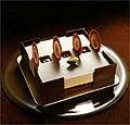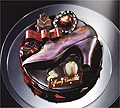 フランス産のリッチなチョコクリームに、キルッシュ風味のクリームとフランボワーズのコンフィチュールを入れ、キャラメルソースをしのばせたユニークな形のケーキ。