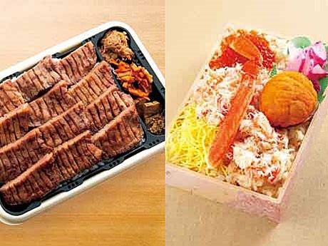 池袋東武「ニッポンのうまいもの祭 in TOBU」。たんや善治郎「真中たん弁当(加熱式)」(左)、かに船「うにの貝焼き弁当」(右)(2018-12-03)